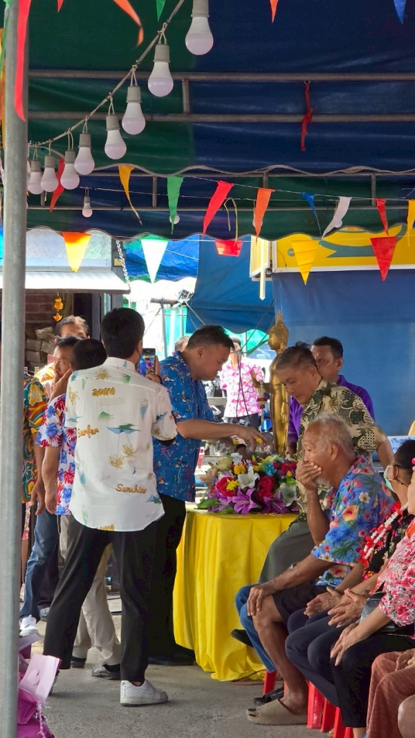 วันที่ 13 เมษายน 2568 เวลา 07.00 น. ตักบาตรเช้า รดน้ำดำห้วผู้สูงอายุ