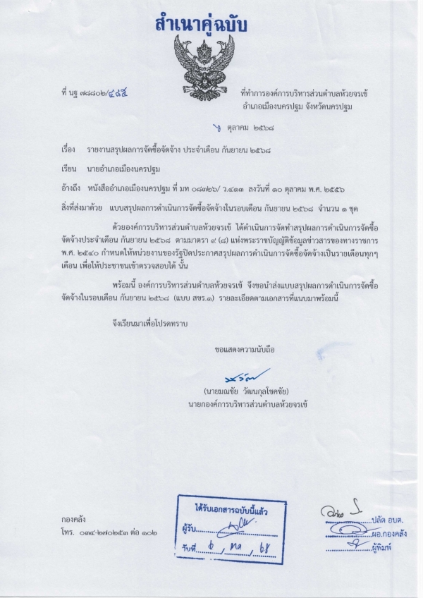 รายงานสรุปผลการจัดซื้อจัดจ้างประจำเดือนกันยายน 2568