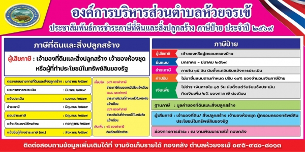 ประชาสัมพันธ์การชำระภาษีที่ดินและสิ่งปลูกสร้าง ประจำปี2569