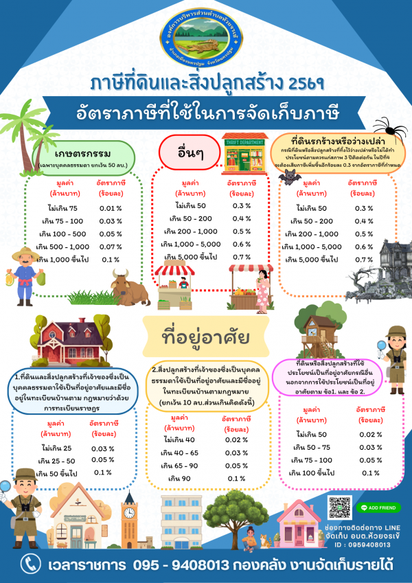 อัตราภาษีที่ใช้ในการจัดเก็บภาษีที่ดินเเละสิ่งปลูกสร้าง ประจำปี 2569