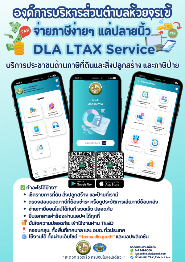 องค์การบริหารส่วนตำบลห้วยจรเข้ จ่ายภาษีง่ายๆ แค่ปลายนิ้ว DLA LTAX Servic ระบบบริการประชาชนด้านภาษีที่ดินเเละสิ่งปลูกสร้าง และป้าย
