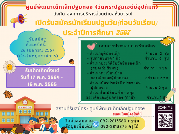 ประกาศรับสมัครเด็กนักเรียนปฐมวัย ประจำปีการศึกษา 2567