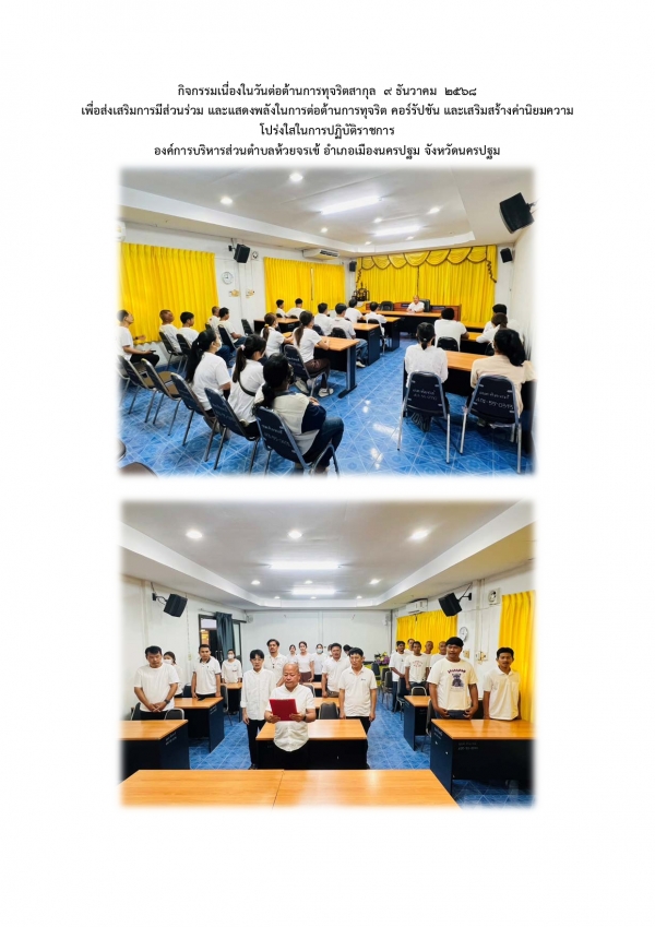 องค์การบริหารส่วนตำบลห้วยจรเข้ จัดกิจกรรมเนื่องในวันต่อต้านการทุจริตสากล เพื่อส่งเสริม