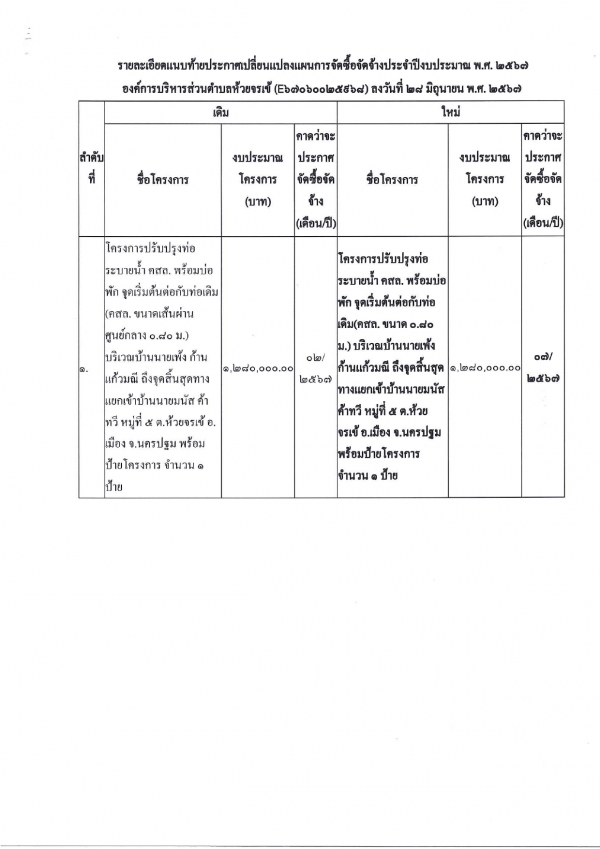 ประกาศเปลี่ยนแปลงแผนการจัดซื้อจัดจ้าง ประจำปีงบประมาณ พ.ศ.2567