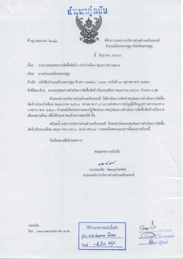 รายงานสรุปผลการจัดซื้อจัดจ้างประจำเดือนพฤษภาคม 2568