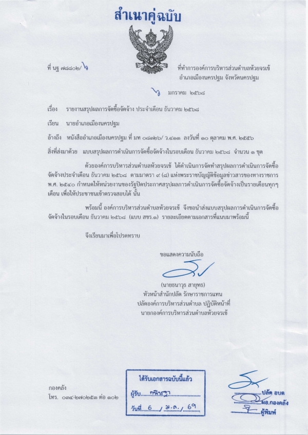 รายงานสรุปผลการจัดซื้อจัดจ้างประจำเดือนธันวาคม 2568