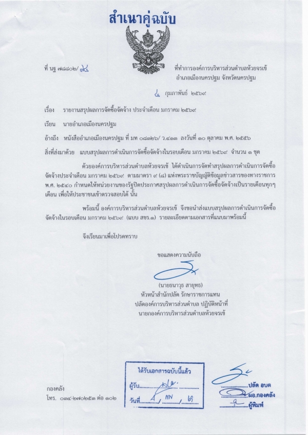 รายงานสรุปผลการจัดซื้อจัดจ้างประจำเดือนมกราคม 2569