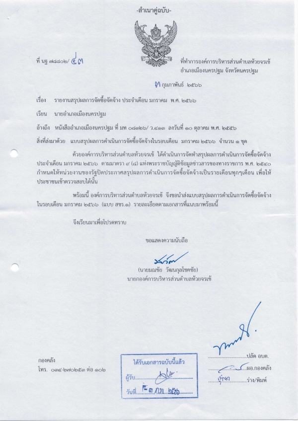 รายงานสรุปผลการจัดซื้อจัดจ้างประจำเดือนมกราคม 2566