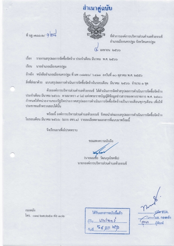 รายงานสรุปผลการจัดซื้อจัดจ้างประจำเดือนมีนาคม 2566