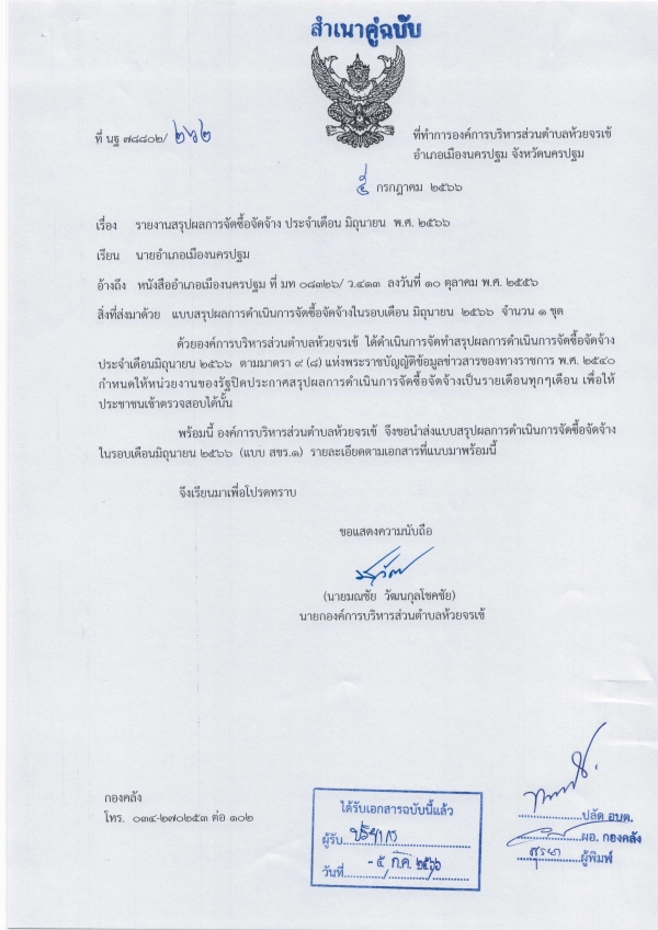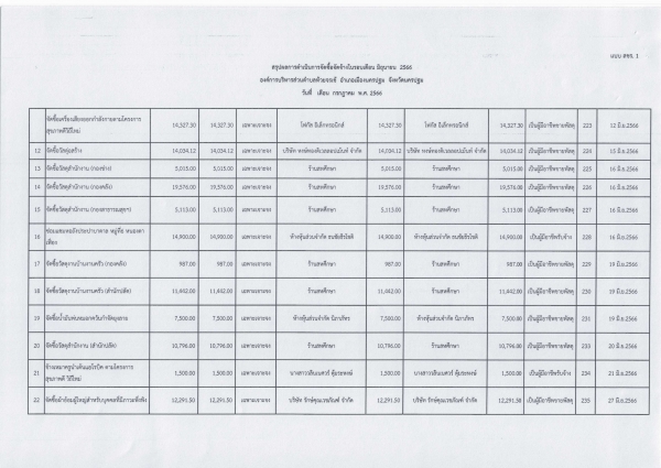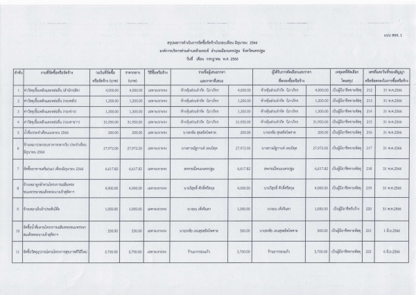 รายงานสรุปผลการจัดซื้อจัดจ้างประจำเดือนมิถุนายน 2566