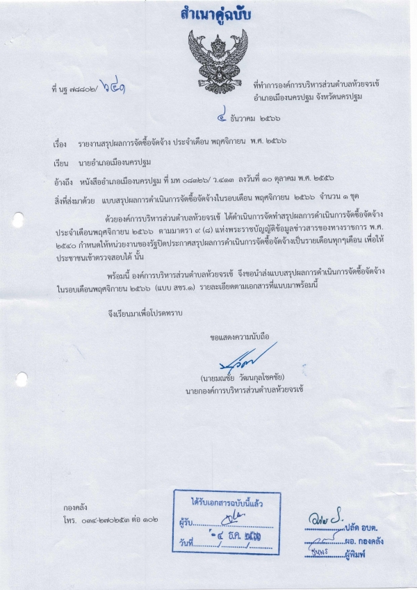 รายงานสรุปผลการจัดซื้อจัดจ้างประจำเดือนพฤศจิกายน 2566