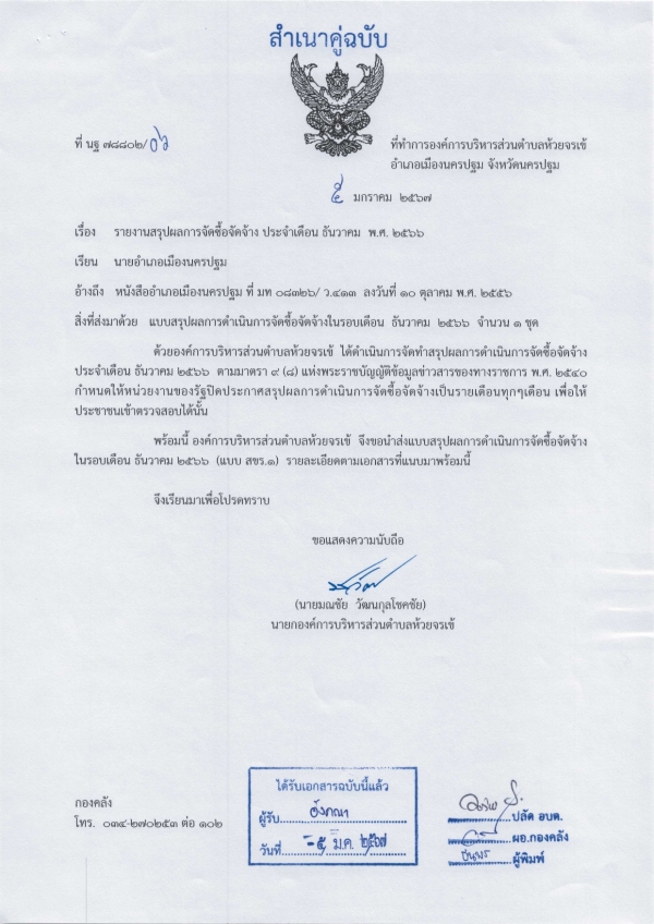 รายงานสรุปผลการจัดซื้อจัดจ้างประจำเดือนธันวาคม 2566